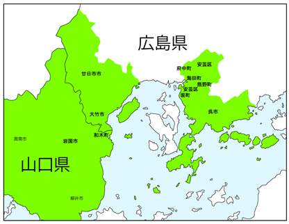 ●広島県/呉市・安芸郡・広島市・廿日市市・大竹市 ●山口県/岩国市〜周南市まで(大島を除く)